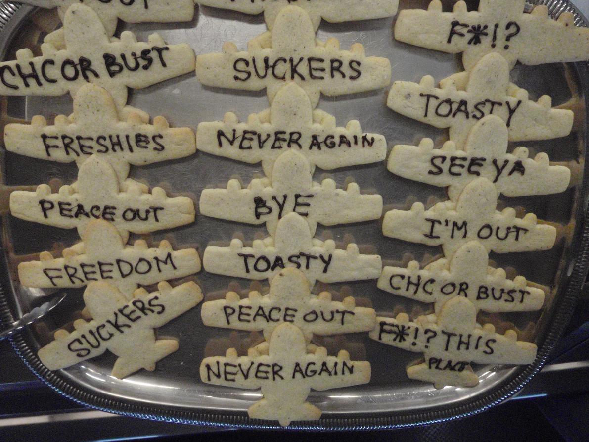 This morning I walked into work and found a tray of airplane cookies made by John le Summer Baker at Pole, and they really mirror the feelings of the winterover Polies right now. We been waiting on a plane for several days now... first it was a weather delay... then a mechanical error.. then weather delay again. But, tomorrow the light is green and with 4 Herc planes at McMurdo and clear weather we should be getting some new folks and fuel. When that first plane arrives I'm outta here. Roughly 24 hours to go. I got my boots tied tight and my bags packed, all I need to do now is a plane dance and give some offerings to the Skua goddess.